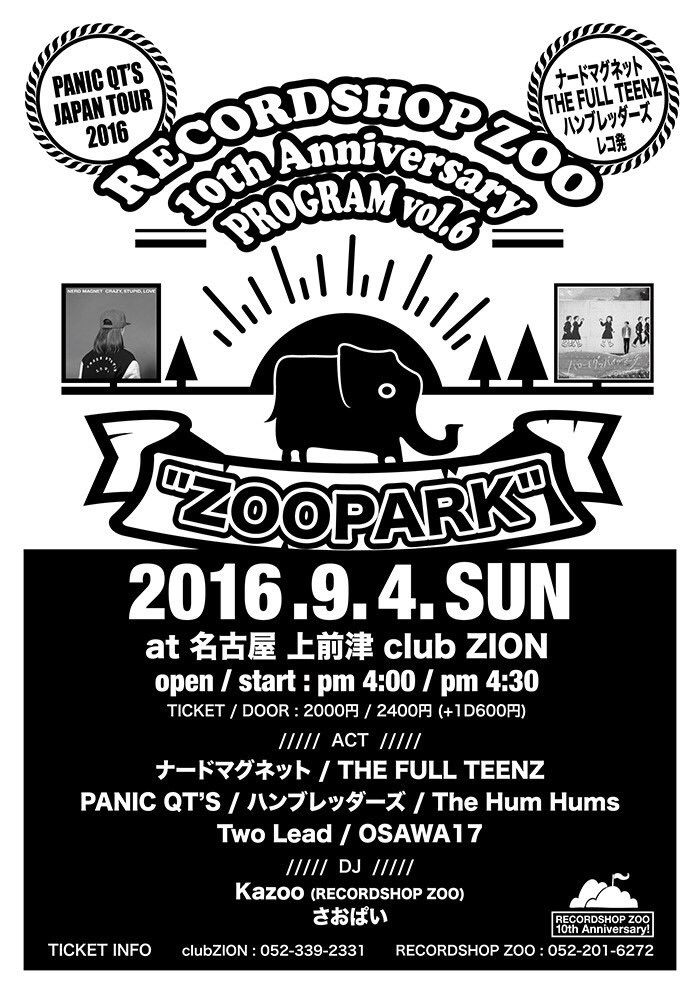 - [Bands] ハンブレッダーズ / ナードマグネット / THE FULL TEENZ / PANIC QT'S /THE Hum Hums / Two Lead / OSAWA 17 [DJ] Kazoo(RECORD SHOP ZOO) / さおぱい