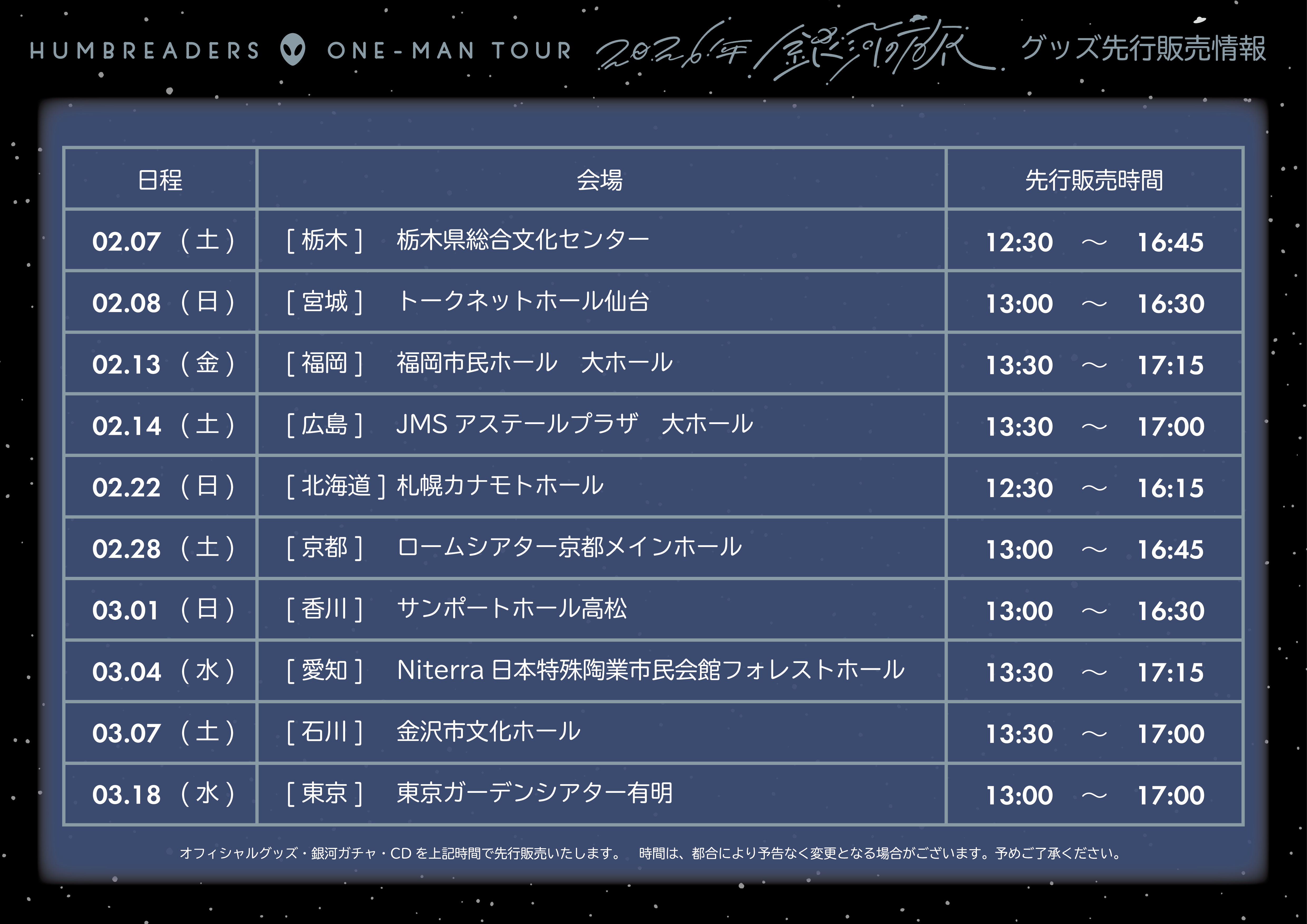 ハンブレッダーズ ワンマンツアー “2026年銀河の旅” オフィシャルグッズページはこちら