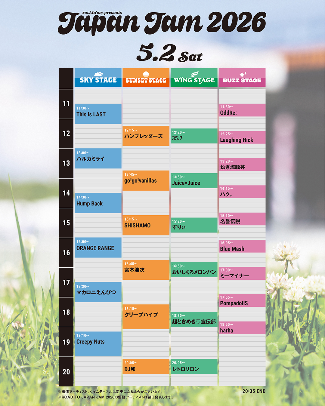 5/2(土)に出演する「rockin’on presents JAPAN JAM 2026 」のタイムテーブルが公開!